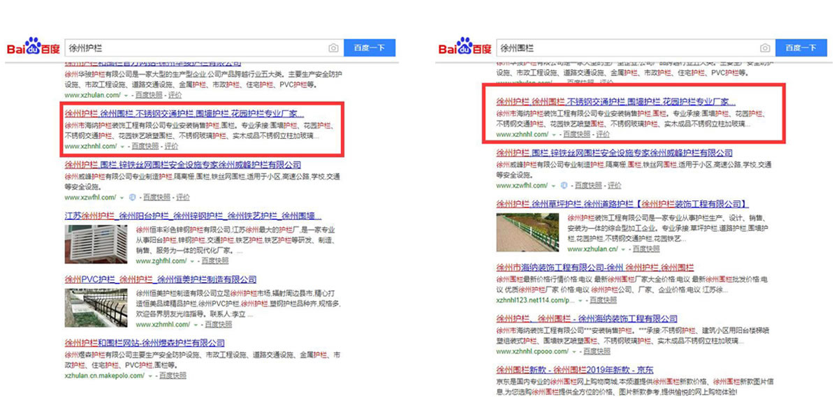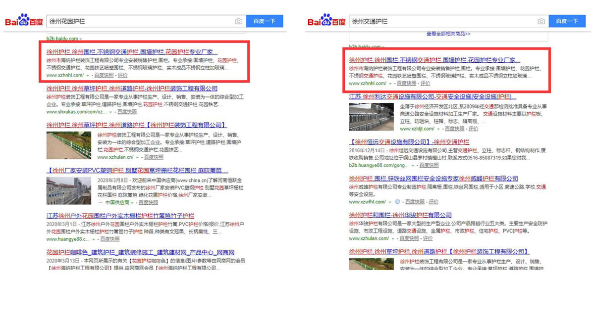 徐州海納護(hù)欄工關(guān)鍵詞排名效果
