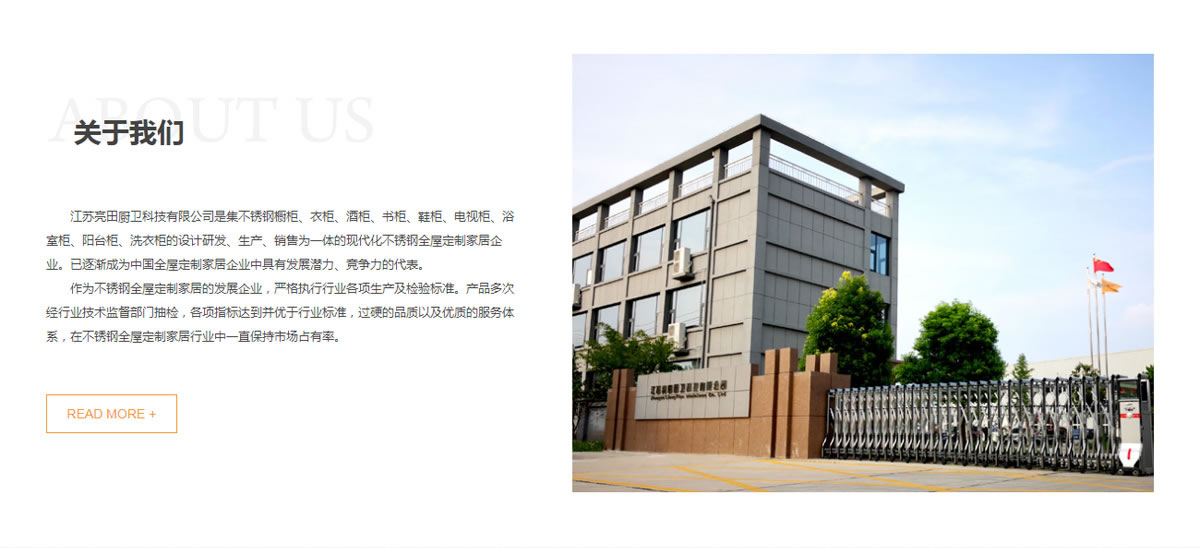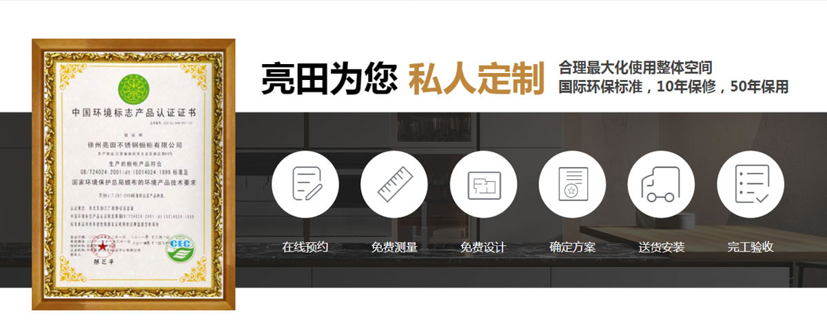 江蘇亮田廚衛科技有限公司是集不銹鋼櫥柜、衣柜、酒柜、書柜、鞋柜、電視柜、浴室柜、陽臺柜、洗衣柜的設計研發、生產、銷售為一體的現代化不銹鋼全屋定制家居企業。已逐漸成為中國全屋定制家居企業中具有發展潛力、競爭力的代表。