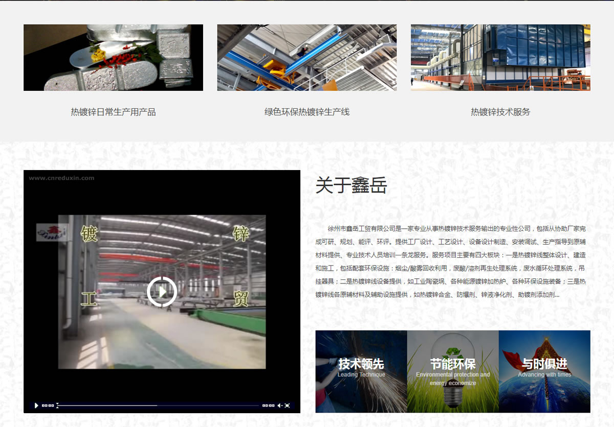 徐州市鑫岳工貿有限公司是一家專業從事熱鍍鋅技術服務輸出的專業性公司,包括從協助廠家完成可研、規劃、能評、環評。提供工廠設計、工藝設計、設備設計制造、安裝調試、生產指導到原輔材料提供、專業技術人員培訓一條龍服務。服務項目主要有四大板塊:一是熱鍍鋅線整體設計、建造和施工,包括配套環保設施:煙塵/酸霧回收利用,廢酸/溶劑再生處理系統,廢水循環處理系統,吊掛器具;二是熱鍍鋅線設備提供,如工業陶瓷堝、各種能源鍍鋅加熱爐、各種環保設施裝備;三是熱鍍鋅線各原輔材料及輔助設施提供,如熱鍍鋅合金、防爆劑、鋅液凈化劑、助鍍劑添加劑、阻鍍劑、酸液緩蝕抑霧劑、鋅鍋保護涂料、震動器、離心機、抽鋅泵、撈渣機、熱電偶保護套管、吊掛器具專用線材;四是熱鍍鋅各類專業技術人員培訓。